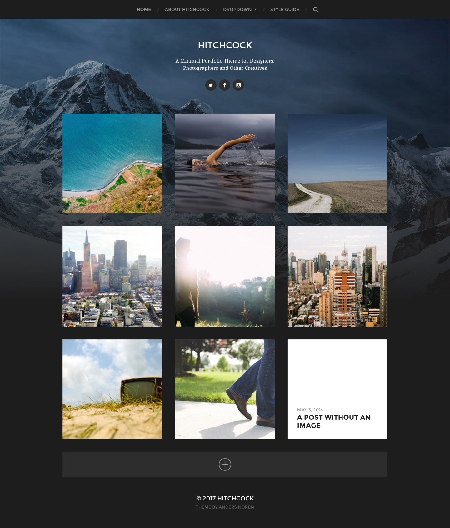 ミニマルながら洗練されたポートフォリオ向けテーマです。正方形で表示されるのでInstagramに少し似たデザインですね。トップに横広の大きな画像を表示することもできるので、目を引きやすいのも強みです。